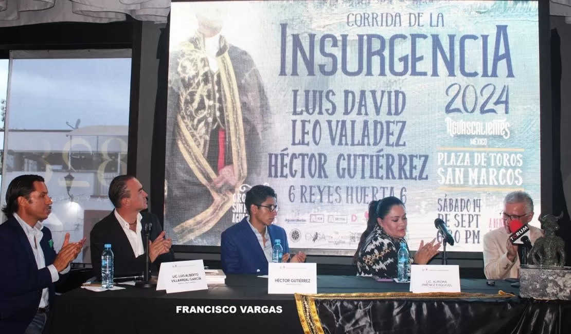 De esta manera, ante la presencia de la señora Aurora Jiménez Esquivel, primera voluntaria y presidenta del sistema estatal de Desarrollo Integral de la Familia (DIF); del matador de toros Héctor Gutiérrez, de la licenciada Gloria M. Romo Cuesta, secretaria de turismo del estado, en representación de la gobernadora Teresa Jiménez Esquivel; del médico veterinario zootecnista José Ángel González Serna, presidente del Patronato de la Feria Internacional de San Marcos; del licenciado Héctor Alejandro Vázquez Zúñiga, director el Instituto de Cultura de Aguascalientes (ICA); del maestro José Ramón Revueltas Retes, director de la Orquesta Sinfónica de Aguascalientes (OSA); del maestro Anuar Atala, artista plástico que se encargará de adornar para esta ocasión el coso “San Marcos” y del diestro Fabián Barba, coordinador operativo de las plazas de toros en la ciudad de Aguascalientes, el licenciado Alberto Villarreal García, creador del concepto de la “Corrida de la Insurgencia”, dio a conocer los detalles de este festejo único y uno de los más relevantes del calendario taurino nacional y continental.