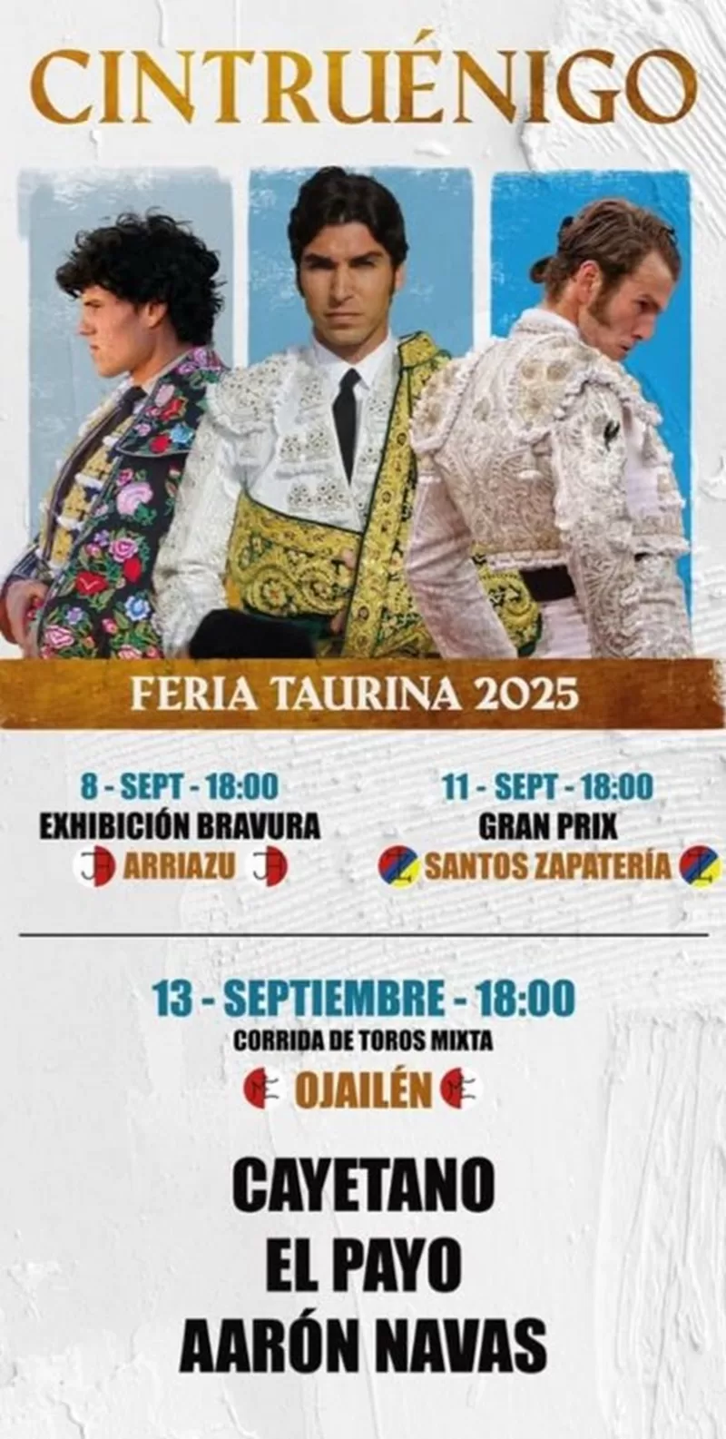 Y, el entrante sábado 13, hará el paseíllo, en corrida mixta, en el coso navarro de Cintruénigo, con motivo de su feria en honor a la Virgen de la Paz, alternando con el matador madrileño Cayetano Rivera y estando también en el cartel el novillero regional Aarón Navas para lidiar ejemplares castellanos-manchegos de Ojailén.