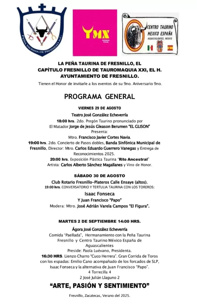 #FRESNILLO EXTIENDE LA INVITACIÓN A SUS EVENTOS TAURINOS Y CULTURALES